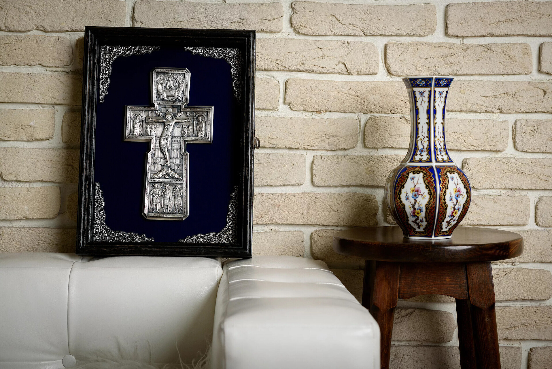 Ideala pentru a fi asezata intr-un spatiu de rugaciune, intr-un colt bisericesc sau pentru a fi oferita drept dar spiritual, aceasta cruce ortodoxa imbina traditia cu maiestria artistica intr-un mod cu totul aparte.