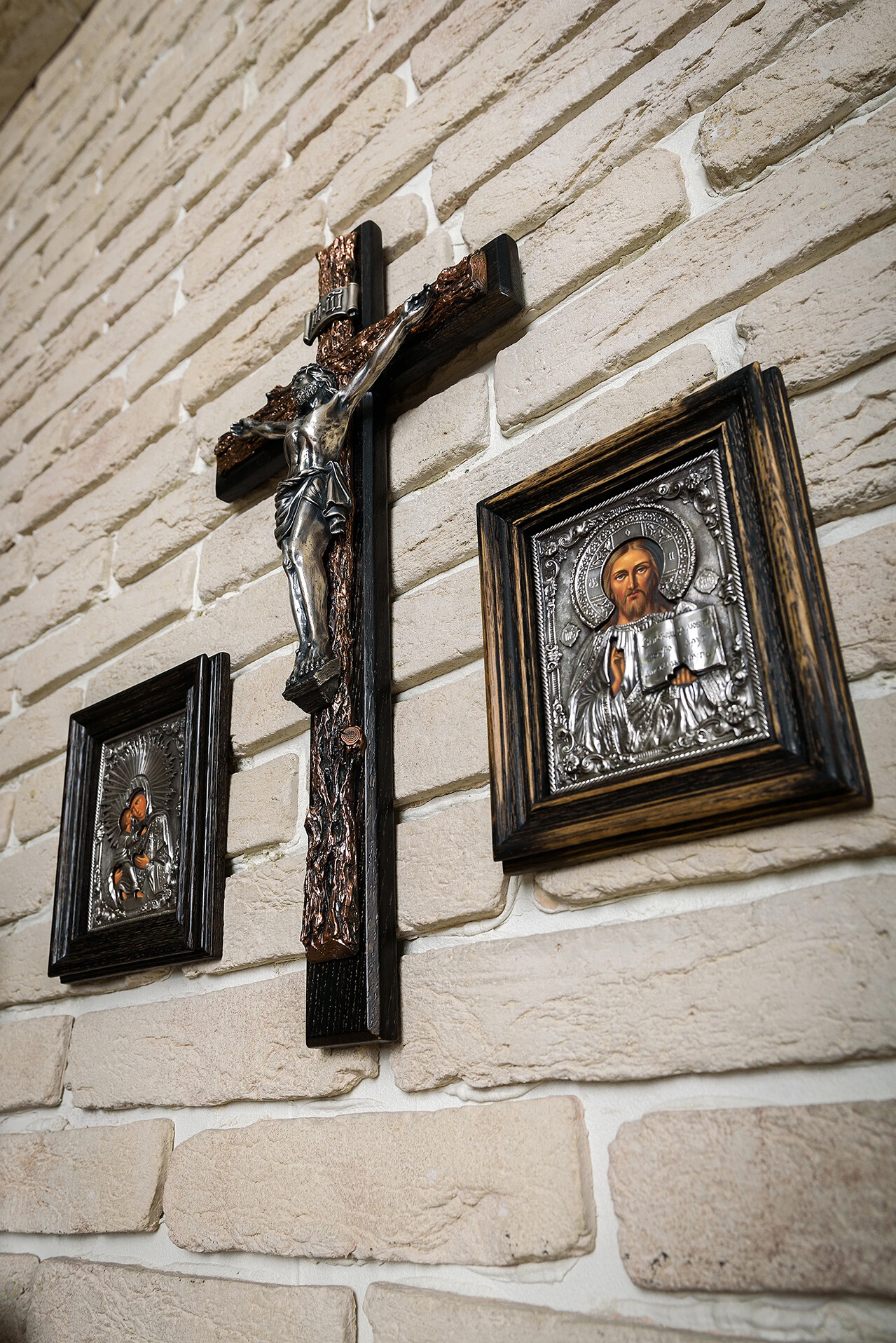 Cu o inaltime de 55 cm si latime de 28 cm, aceasta piesa impunatoare este ideala pentru spatii sacre si interioare care aspira la tihna, contemplare si solemnitate. O cruce ortodoxa lucrata nu doar cu maiestrie, ci si cu profunda intelegere a sensului sau sacru.